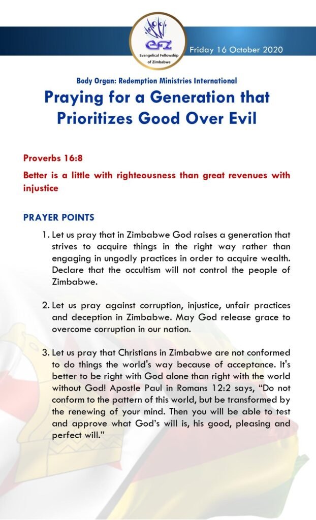 Friday 16th October 2020 Prayer Points – Praying for a Generation that Prioritizes Good Over Evil
